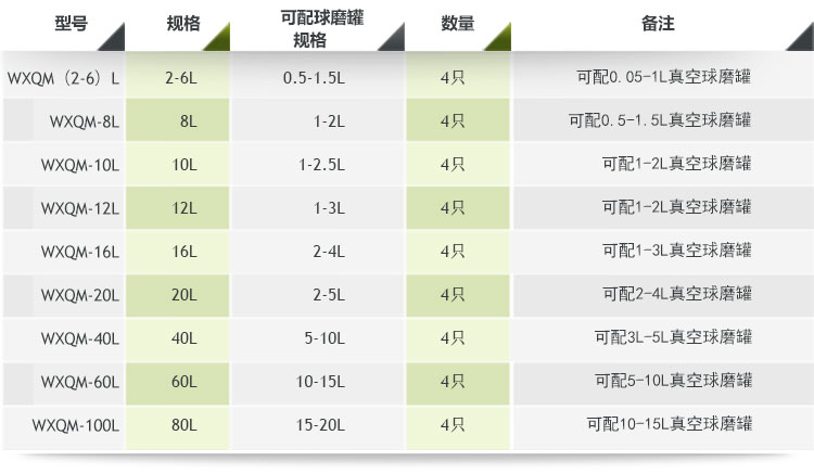 表一:重型臥式行星式球磨機(jī)配罐參考